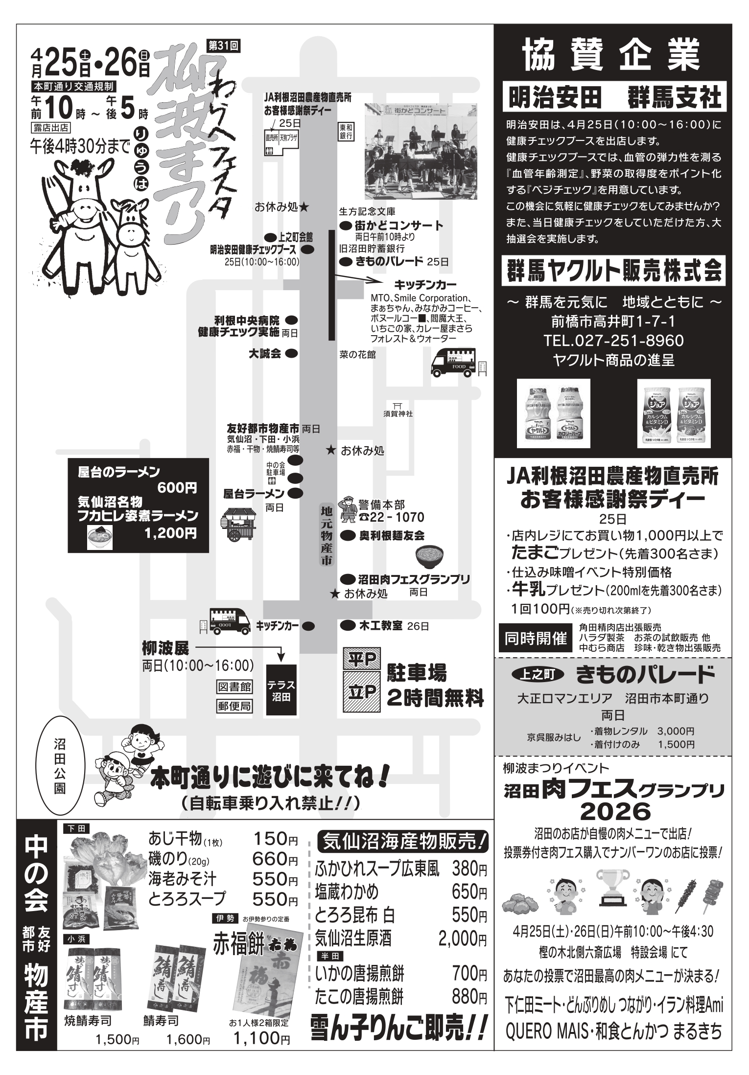 沼田市本町通りを歩行者天国にして露店が出店されるほか、童謡などを歌う街かどコンサートなどを開催します。