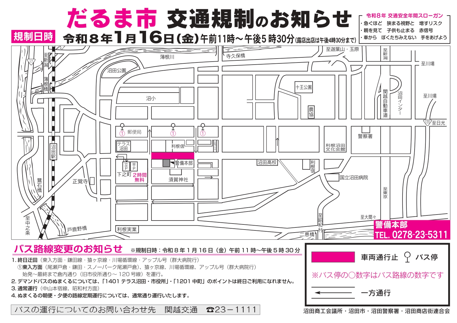 毎年恒例となっている「沼田だるま市」を1月16日(金)に開催いたします。