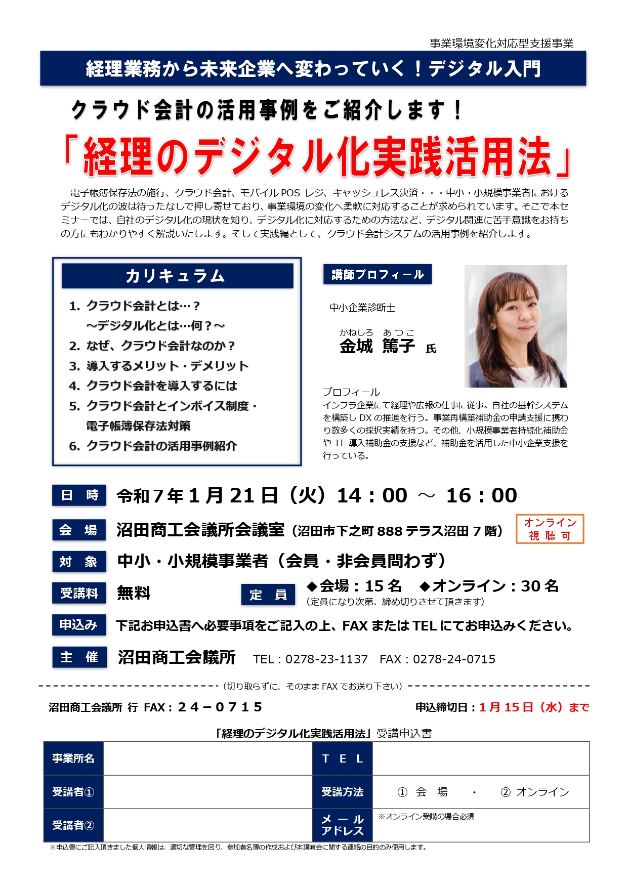 沼田商工会議所へFAX(0278-24-0715)にてお申し込み